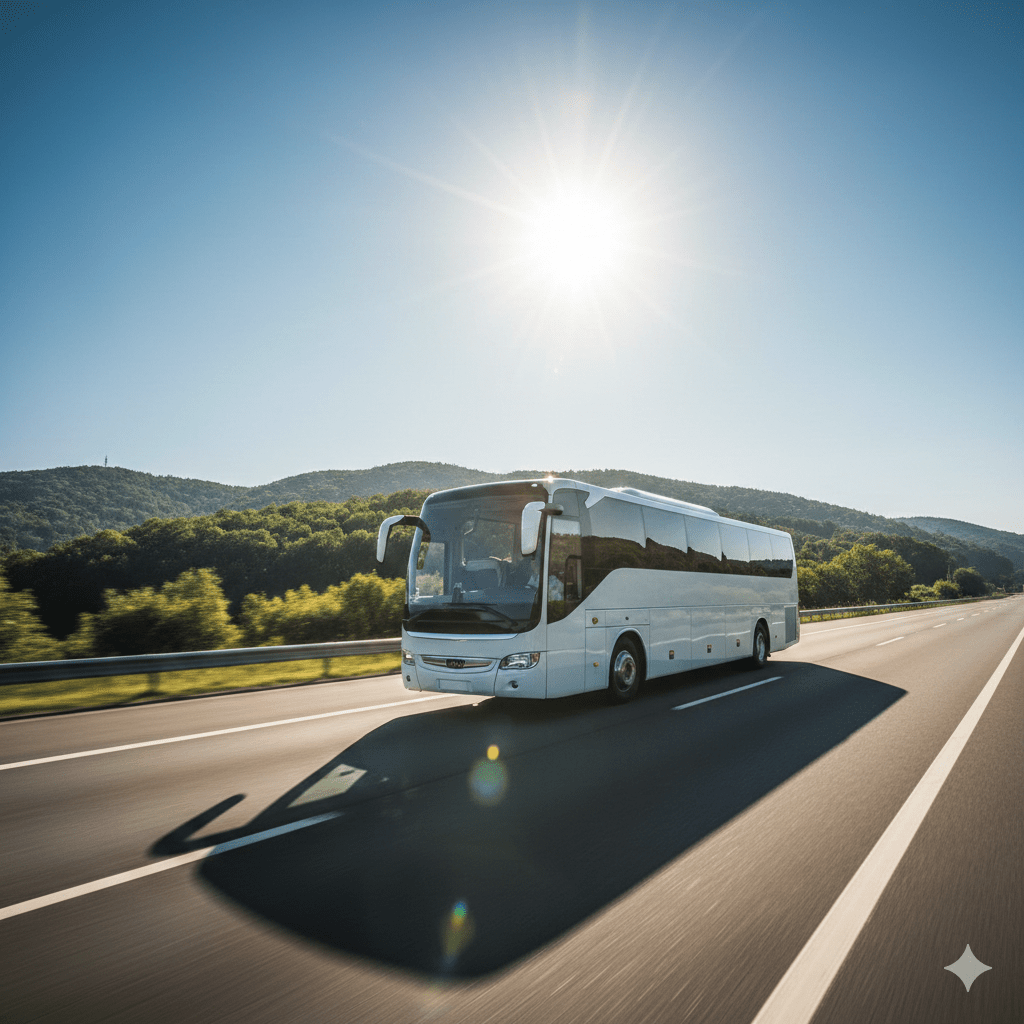 ✅ Transport autokarem wyposażonym w klimatyzację, WC, barek, wideo