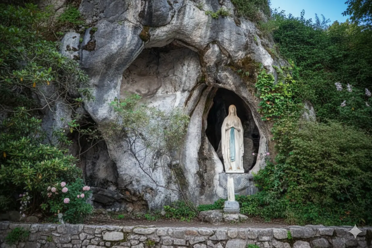 Grota Massabielle, gdzie Maryja ukazała się św. Bernadecie. Miejsce modlitwy, uzdrowień i pielgrzymek.